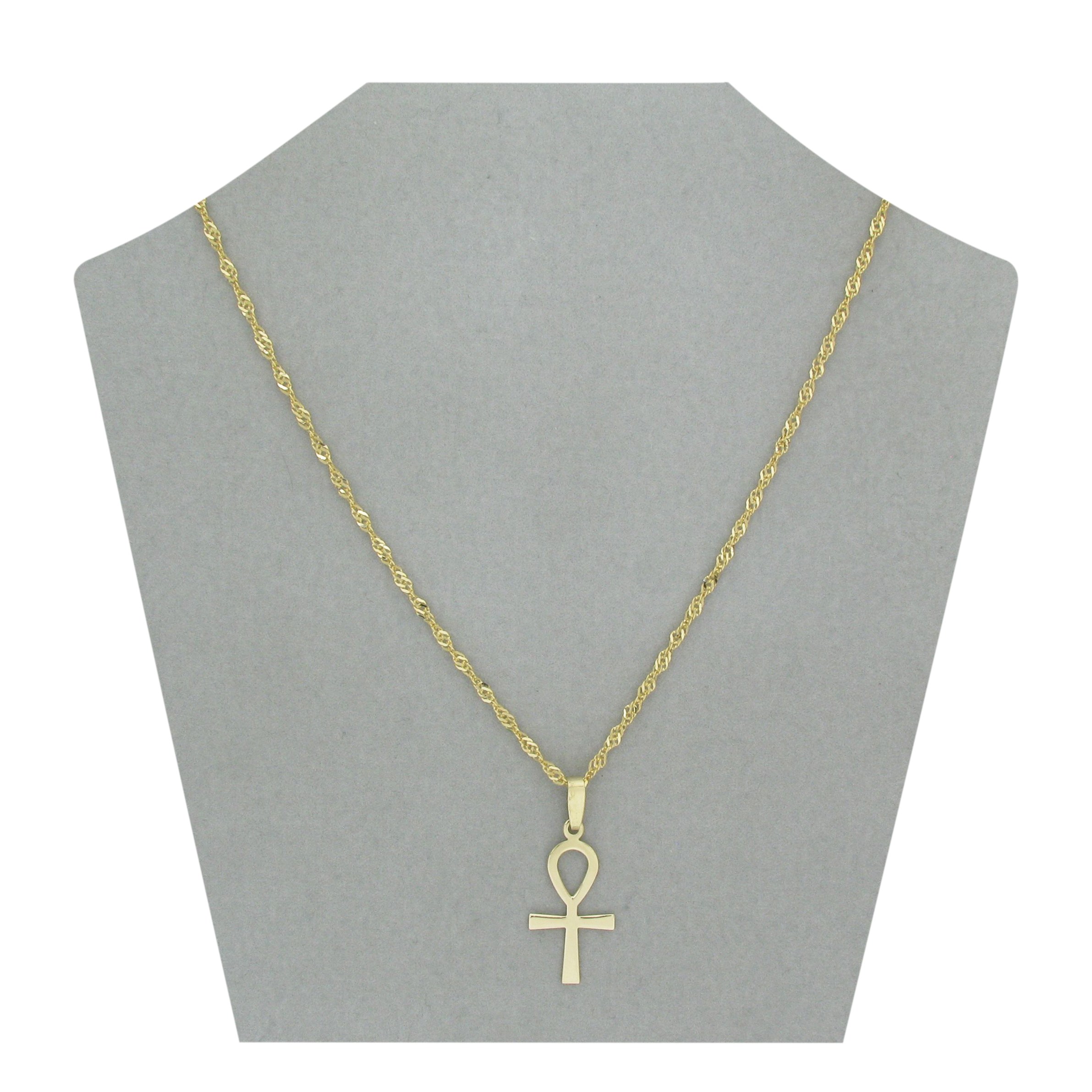 Ervaar de tijdloze mystiek van onze 14 karaat gouden ankh kruis. Het symbool van het eeuwige leven is met zorg vervaardigd, waarbij de warme gloed van het goud de diepte van betekenis benadrukt. Met een gracieuze vorm die elegantie uitstraalt, wordt dit sieraad een subtiel eerbetoon aan zowel spirituele als stijlvolle expressie. Draag deze ankh hanger met trots als een krachtig symbool van continuïteit en verfijning.