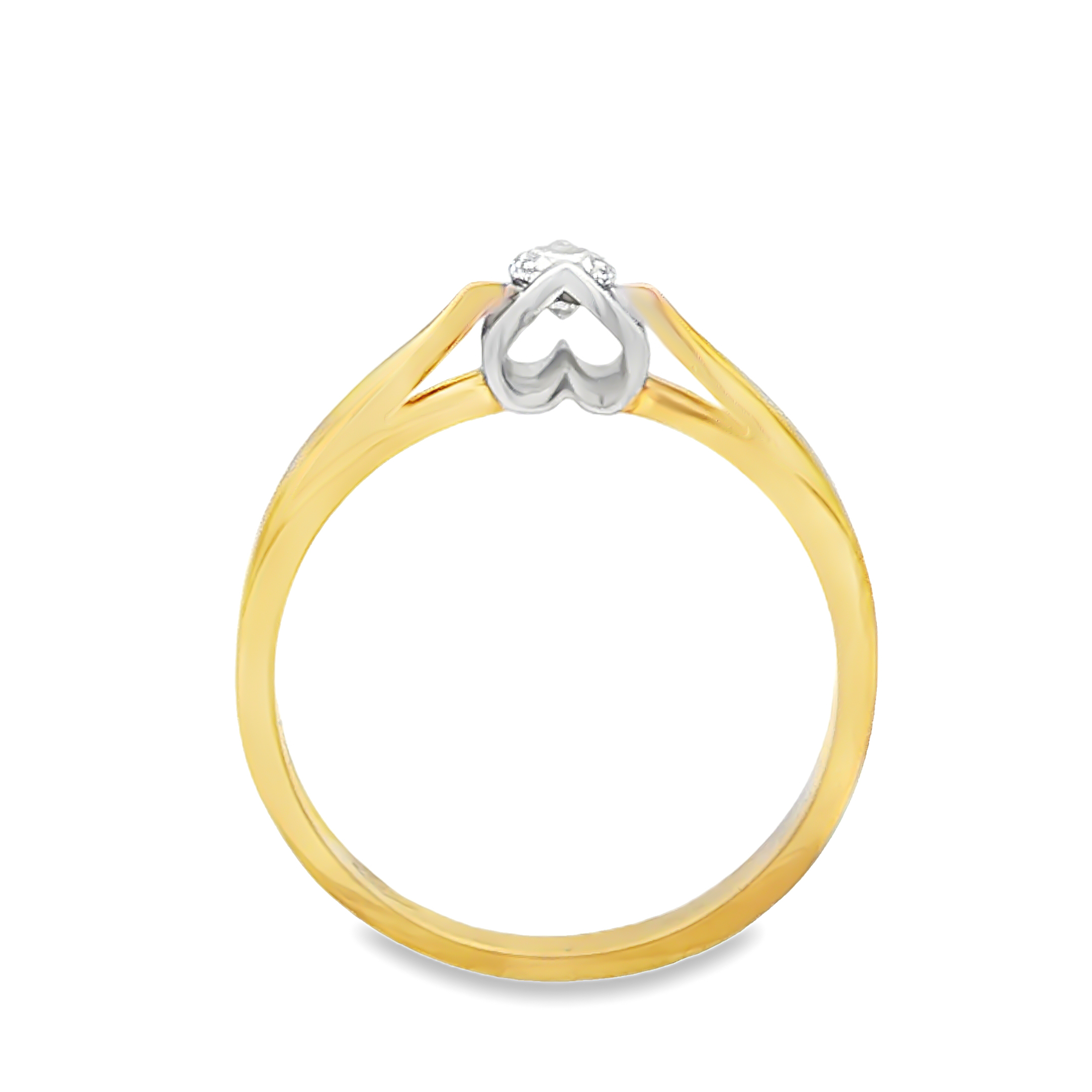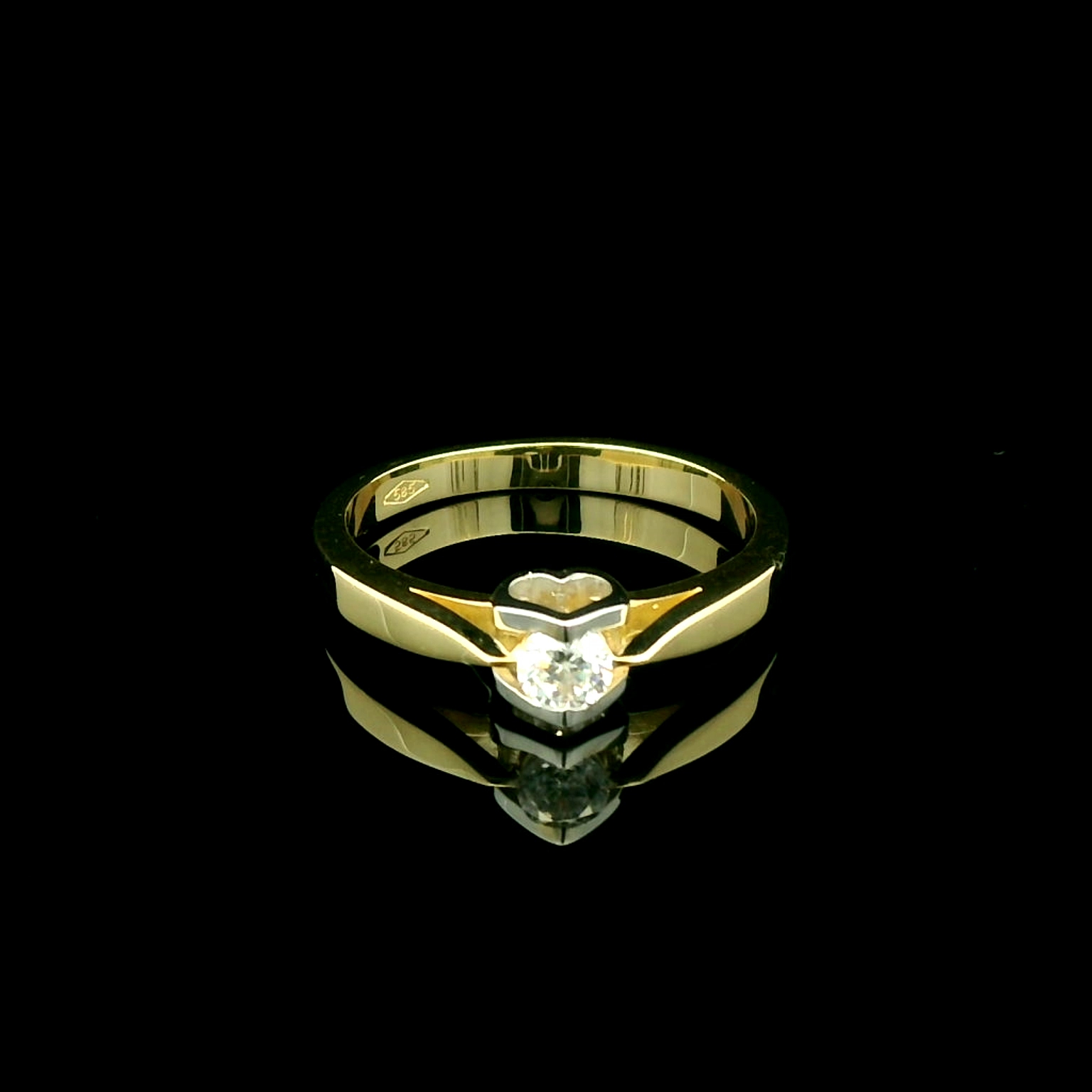 Deze 14 karaat bicolor damesring combineert geelgoud en witgoud op elegante wijze. De ring heeft een strakke, moderne vormgeving waarbij het witgouden zetgedeelte de schitterende zirkonia steen extra laat opvallen. De warme glans van het geelgoud vormt een mooi contrast met de koele tint van het witgoud, wat zorgt voor een tijdloze en stijlvolle uitstraling. Een subtiel maar opvallend sieraad dat elke look een vleugje luxe geeft.