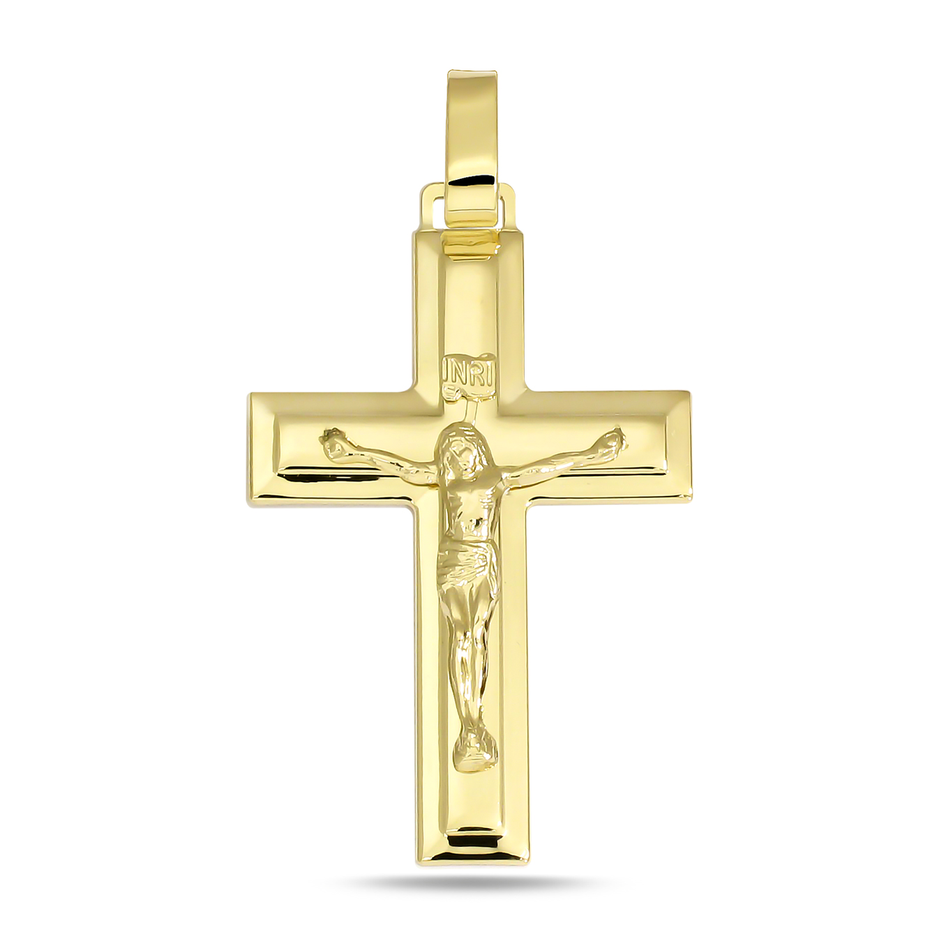 Ontdek onze tijdloze 14 karaat gouden kruis hanger, een symbool van geloof en spiritualiteit. Met zijn verfijnde ontwerp en hoogwaardige afwerking is deze hanger een elegante toevoeging aan elke sieraden collectie. Draag het met trots als een persoonlijk statement van toewijding en stijl.