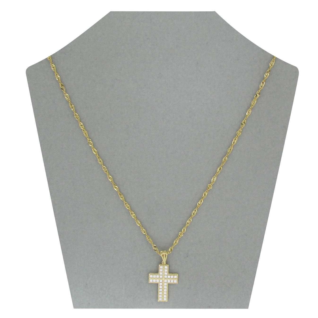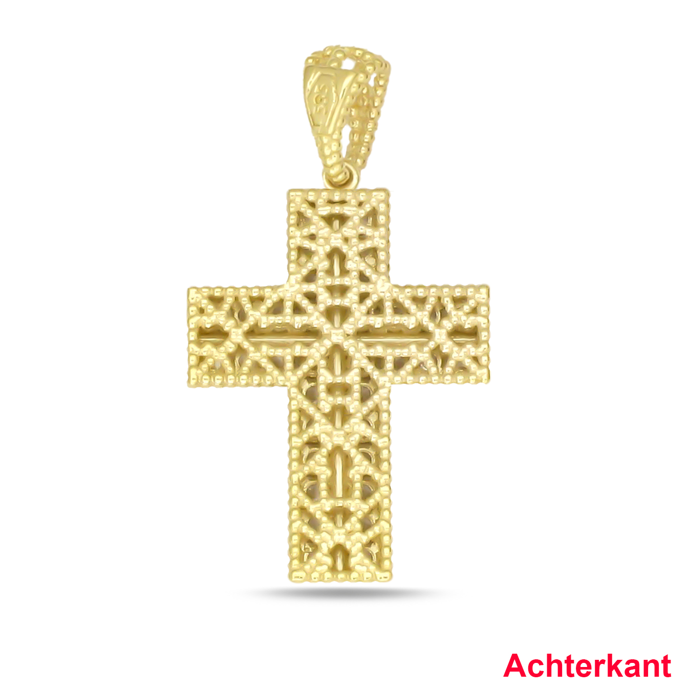 Verrijk je look met onze 14 karaat gouden kruishanger, gezet met sprankelende zirkonia stenen. Dit tijdloze symbool van geloof straalt elegantie uit en voegt een vleugje schittering toe aan elke outfit. Draag het met trots als een persoonlijke uiting van spiritualiteit en stijl.