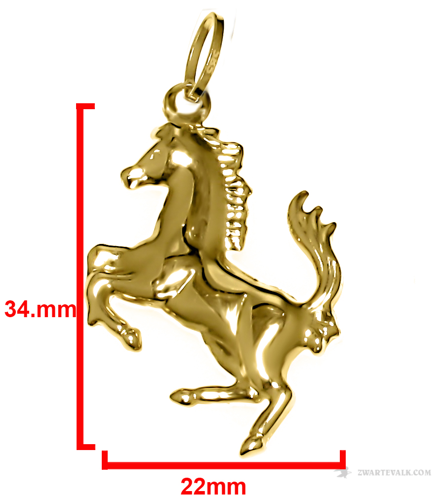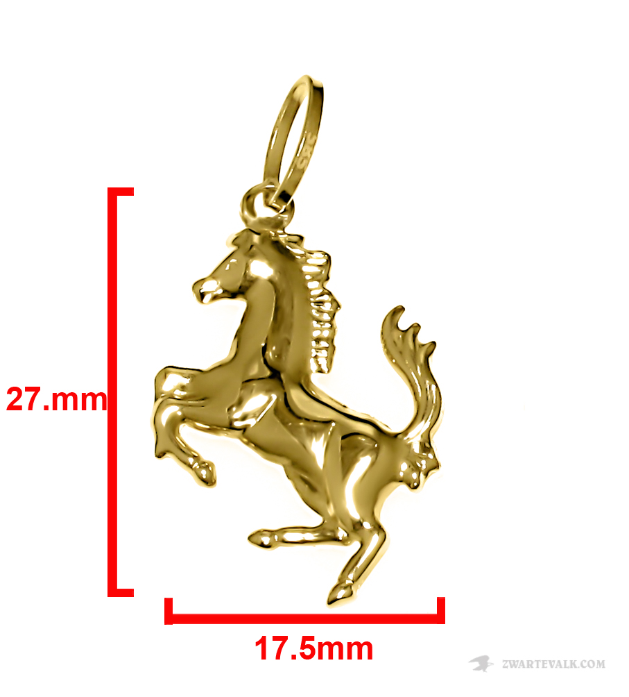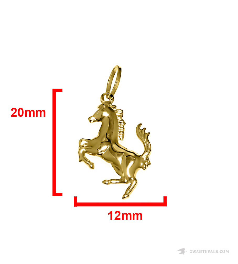 Deze prachtige hanger is gemaakt van 14 karaat goud en heeft de vorm van een paard. Het is een perfect sieraad voor liefhebbers van paarden en de natuur. De details van de hanger zijn verbluffend, van de krachtige contouren van het paard tot de elegante afwerking. De paardhanger is een mooi symbool van kracht, elegantie en vrijheid en het dragen van deze hanger geeft je een gevoel van verbondenheid met de natuur. Het is een geweldig cadeau voor iedereen die van paarden houdt, of het nu een verjaardag, jubileum of een andere speciale gelegenheid is. Of je nu op zoek bent naar een cadeau voor een dierbare of iets moois wilt toevoegen aan je eigen sieraden collectie, deze 14 karaat gouden paardhanger is een prachtige keuze.