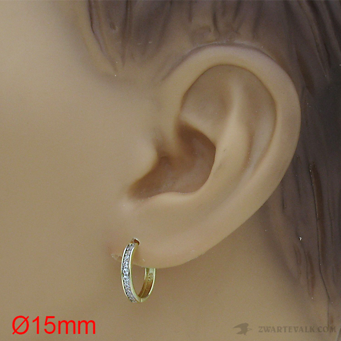 Prachtige 14 karaats geel- en witgouden oorbellen. De voorzijde van deze oorbellen zijn gezet met zirkonia stenen.