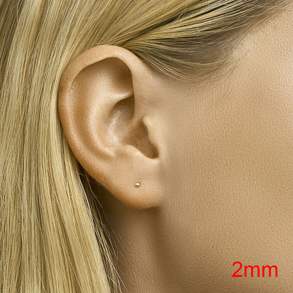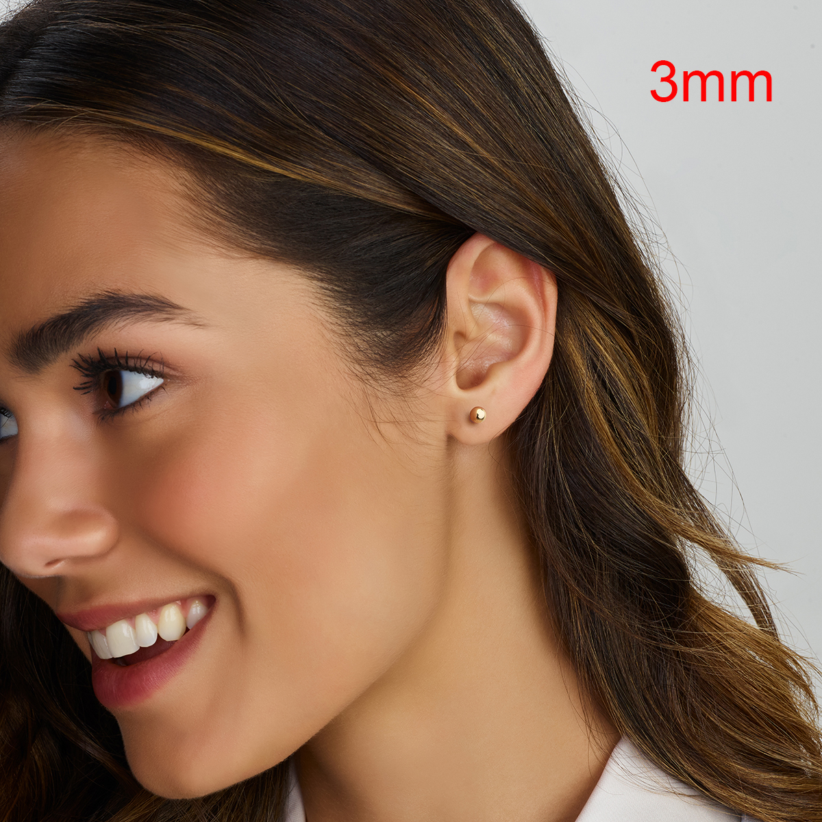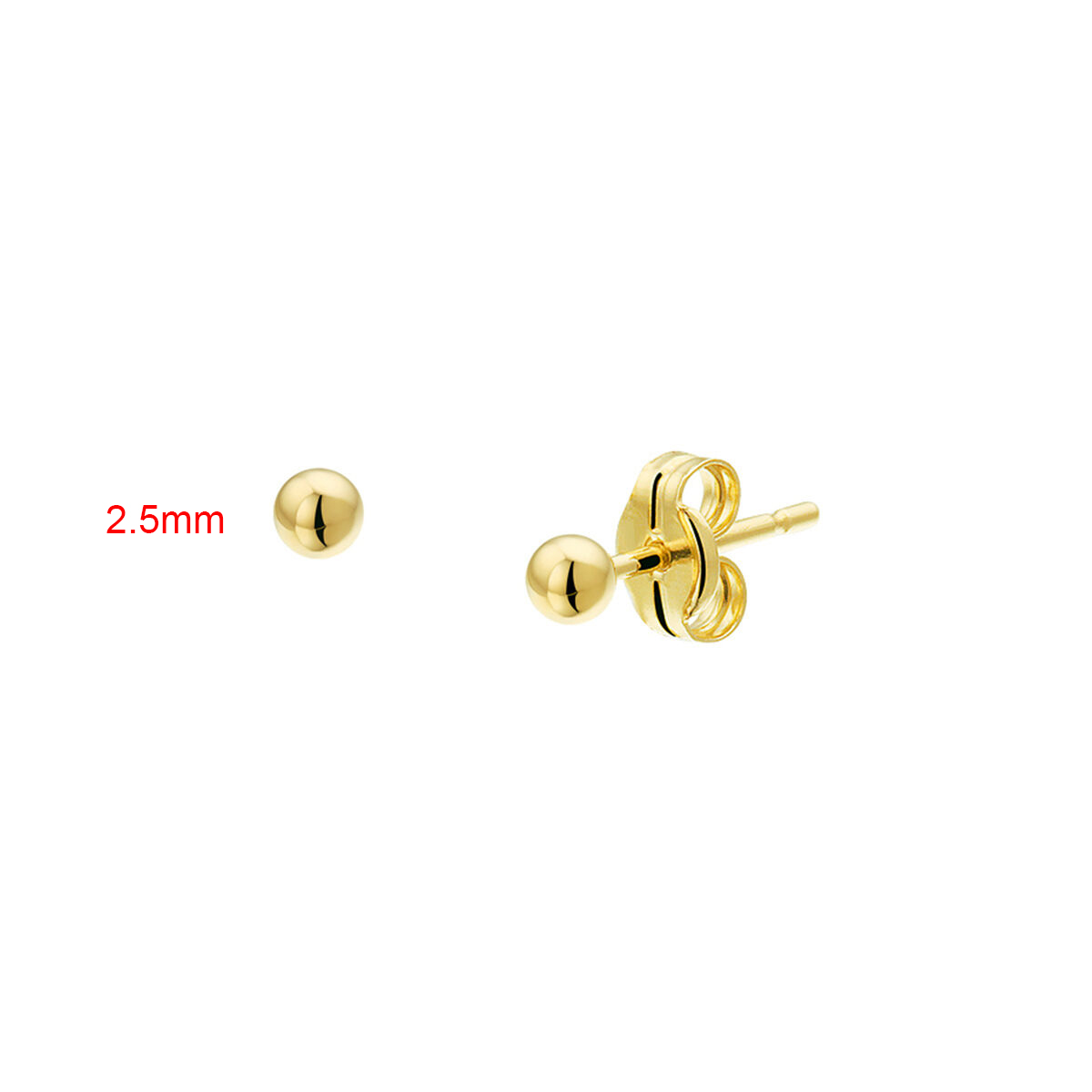 Geelgouden oorknoppen in de vorm van een bolletje. De oorknoppen zijn ook verkrijgbaar in het witgoud.