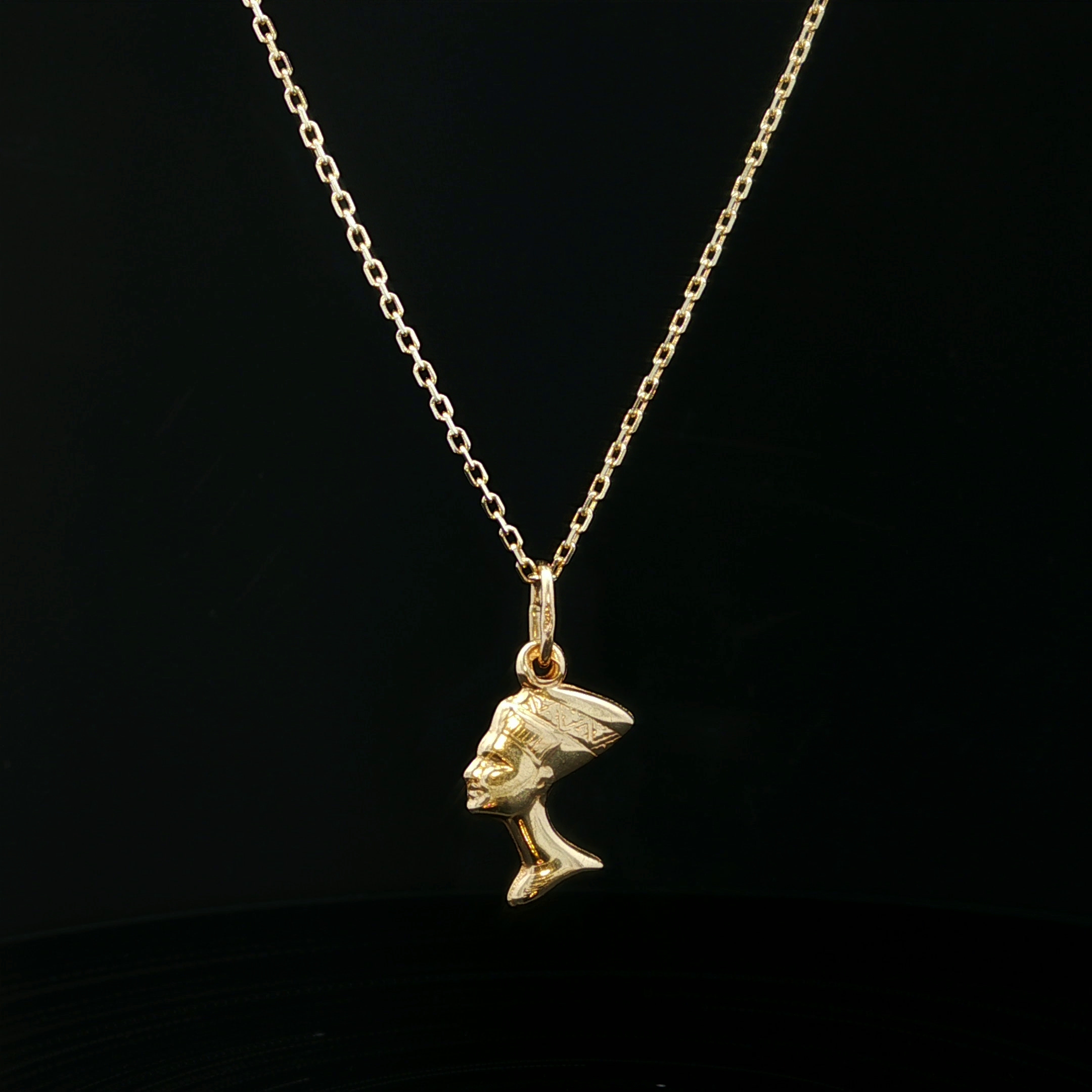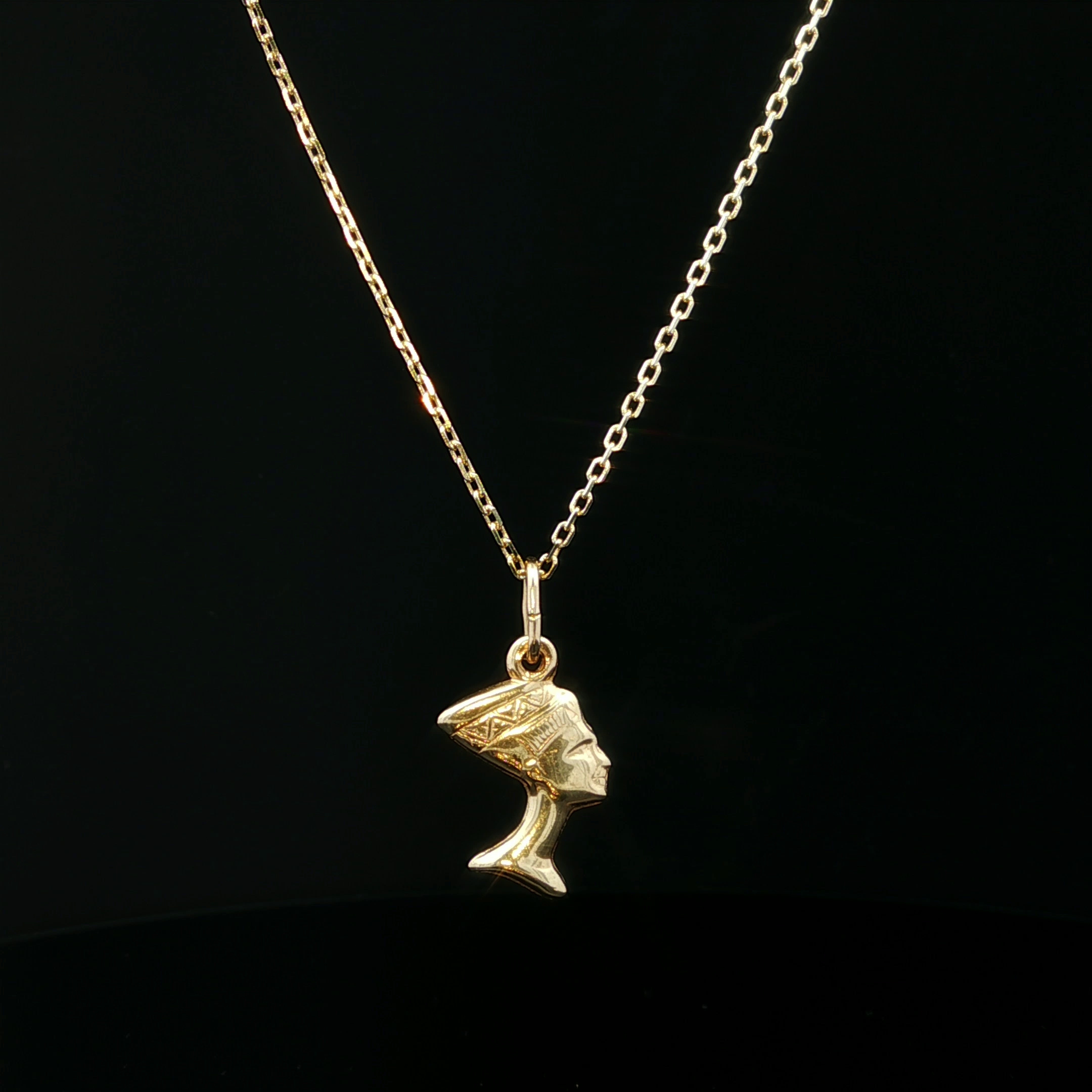 Deze 18 karaat gouden Nefertiti hanger is uitgevoerd in een verfijnd en gedetailleerd ontwerp. De hanger toont het profiel van koningin Nefertiti met herkenbare kroon en elegante lijnen. Het gladde goud geeft het sieraad een warme en luxe uitstraling. Door het slanke model is de hanger geschikt om dagelijks te dragen. Mooi om te combineren met een fijne gouden ketting. Een stijlvol sieraad met een klassieke en historische uitstraling.