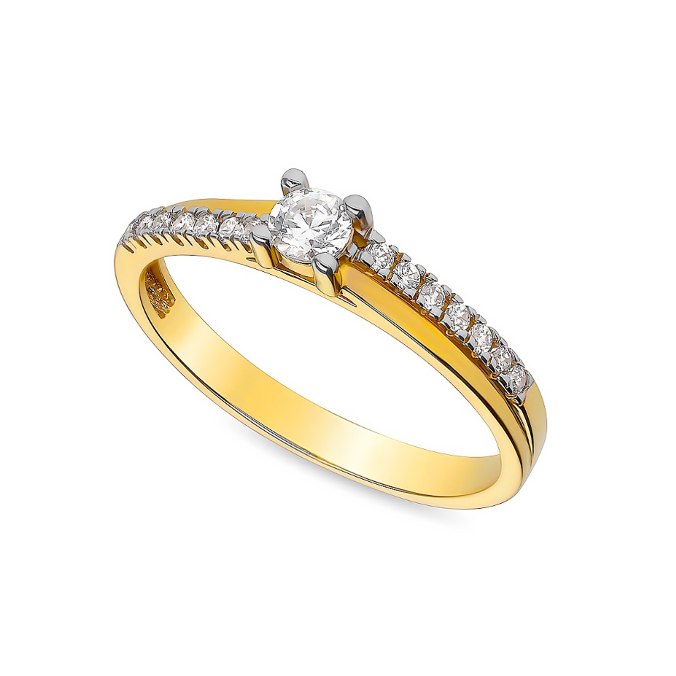 Deze elegante 9 karaat bicolor ring heeft een stijlvolle combinatie van geel- en witkleurige tinten. De fonkelende zirkonia stenen zorgen voor een subtiele, luxe uitstraling. Dankzij het tijdloze en verfijnde design is de ring perfect voor zowel dagelijks gebruik als speciale gelegenheden. Een prachtig sieraad dat moeiteloos klasse en elegantie uitstraalt!