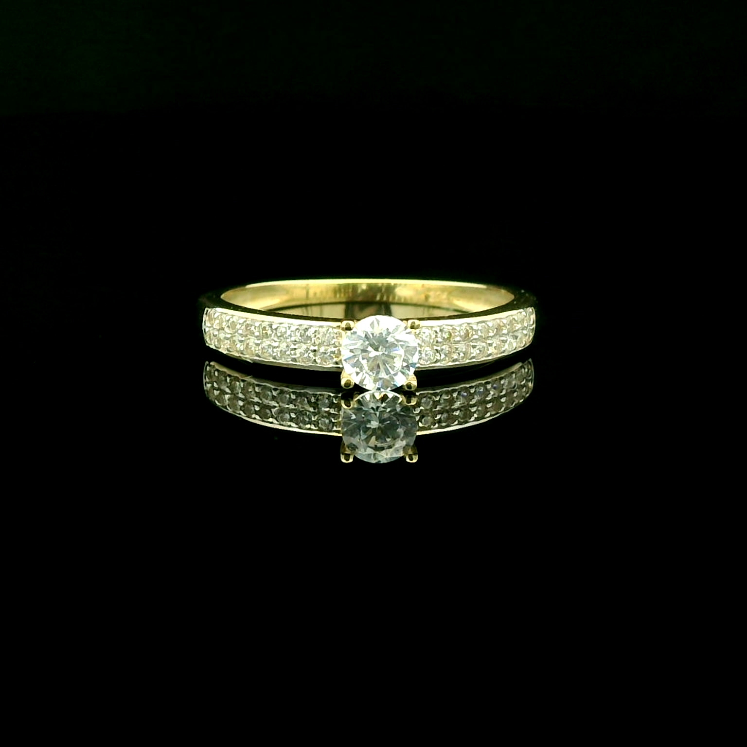 Deze 9 karaat ring heeft een stralend ontwerp met een schitterende ronde zirkonia als middelpunt. De band is aan beide zijden ingelegd met meerdere kleine zirkonia’s, wat zorgt voor extra glans en luxe. Het elegante en tijdloze design maakt deze ring geschikt voor elke gelegenheid. Een stijlvol sieraad dat prachtig om de vinger straalt.