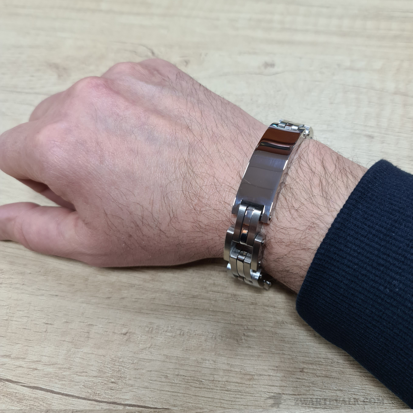 Deze stijlvolle stalen armband is een tijdloze toevoeging aan de garderobe van elke man, gemaakt van hoogwaardig roestvrij staal. De strakke, eenvoudige vormgeving zorgt ervoor dat de armband gemakkelijk te combineren is met elke outfit, of het nu gaat om een casual of formele gelegenheid. De armband heeft een unieke, moderne uitstraling met zijn gepolijste zilveren afwerking en gestroomlijnde ontwerp. De sluiting is eenvoudig te bedienen en zorgt ervoor dat de armband stevig om de pols blijft zitten. De stalen armband is verkrijgbaar in verschillende maten, zodat hij perfect om de pols van elke man past.