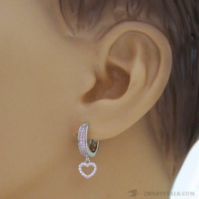 Deze zilveren gerhodineerde oorbellen zijn gezet met roze zirkonia stenen.