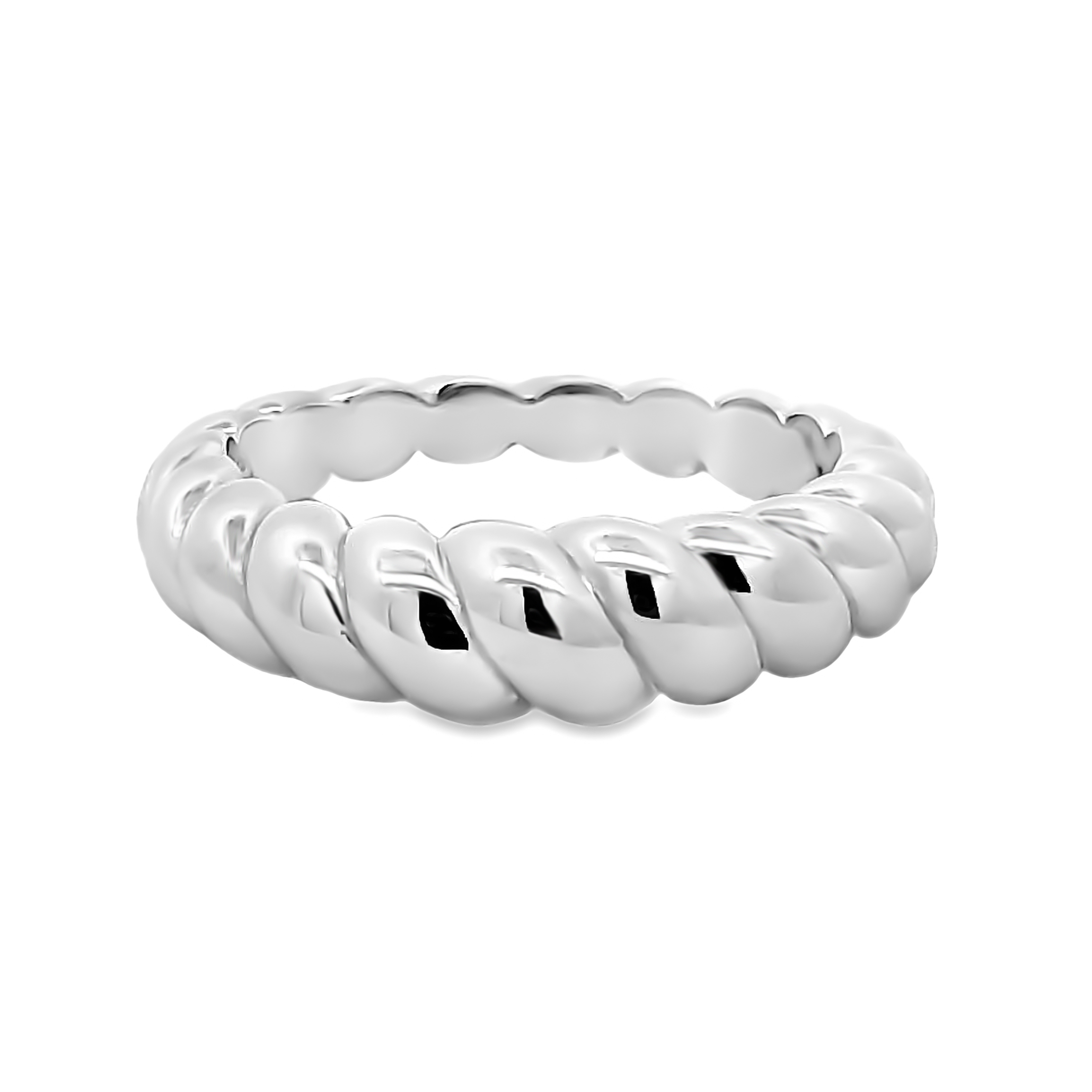 Deze zilveren ring heeft een mooi gedraaid ontwerp dat doet denken aan een touw. De ring is gemaakt van echt zilver en is gerhodineerd, wat zorgt voor extra glans. Door het gladde oppervlak zit de ring comfortabel aan je vinger. Het tijdloze design maakt hem geschikt voor elke dag, maar ook mooi voor een speciale gelegenheid. Je kunt hem alleen dragen of combineren met andere ringen. Een elegante ring die altijd past.