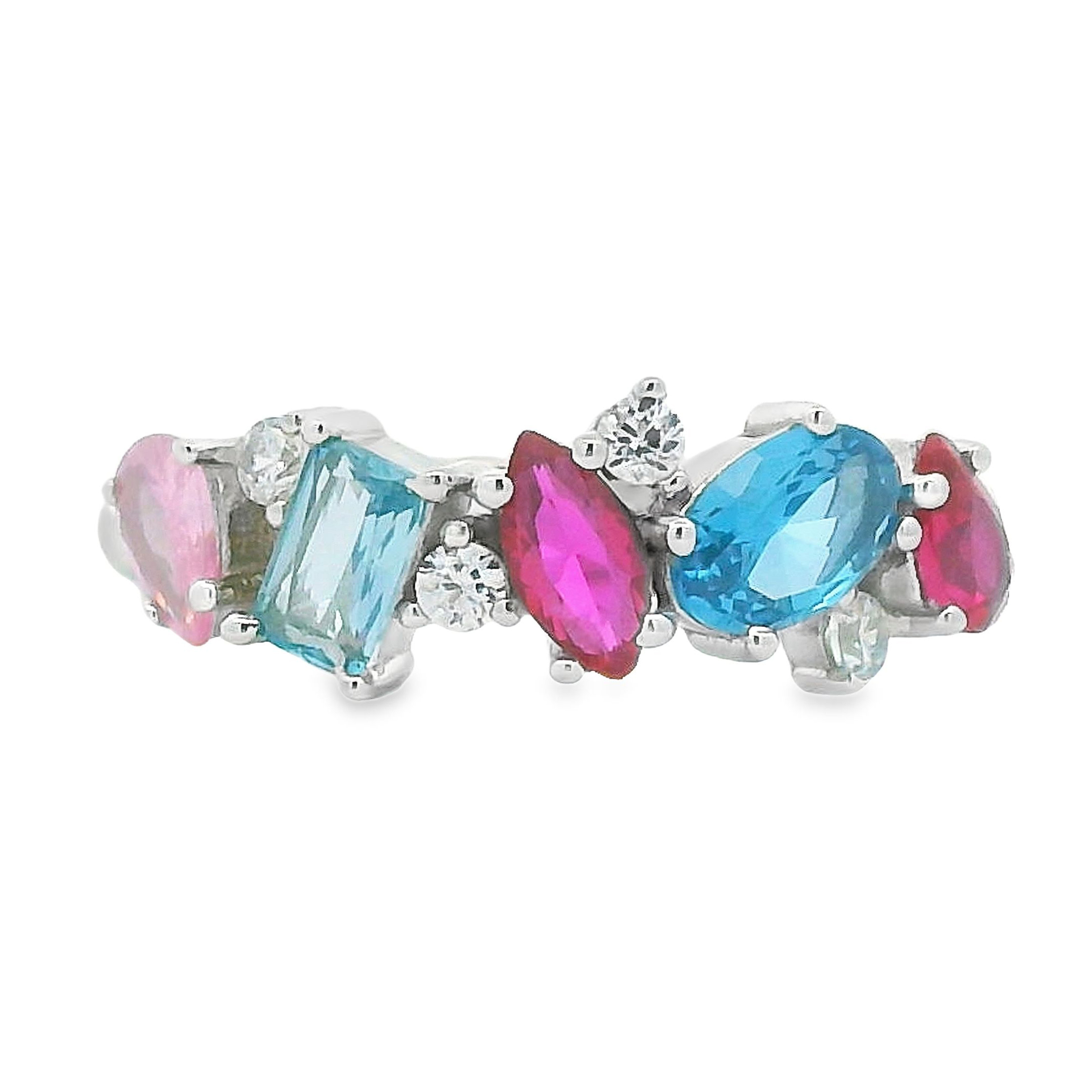 Deze zilveren gerhodineerde damesring is gezet met zirkonia stenen.