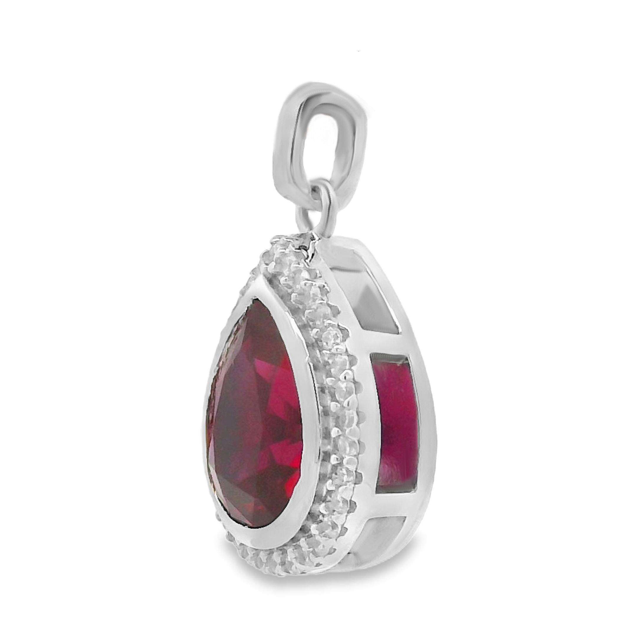 Zilveren hanger met een opvallende druppelvormige rode zirkonia in het midden. De rand is bezet met kleine heldere zirkonia’s, wat het geheel een elegante en vrouwelijke uitstraling geeft. Perfect als romantisch gebaar of stijlvol accent.