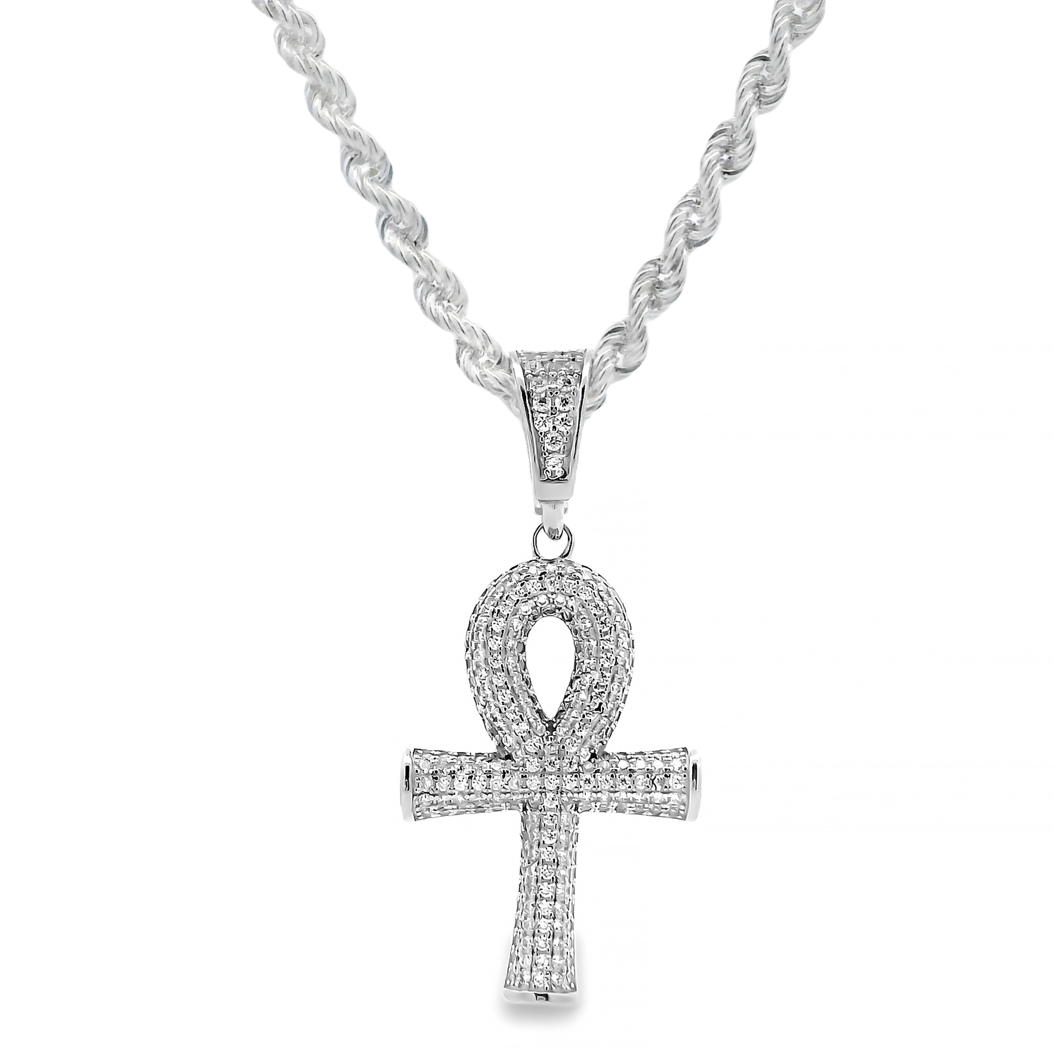 Zilveren (gerhodineerd) ankh kruis hanger 24.178