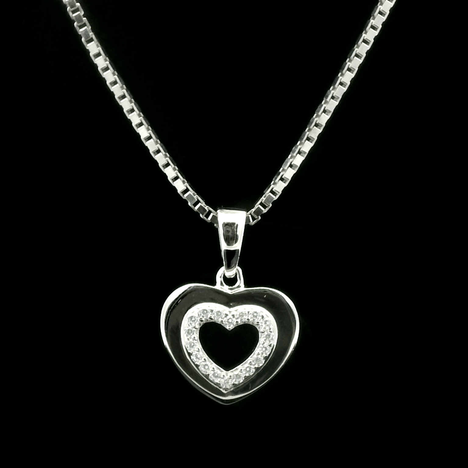 Zilveren (gerhodineerd) hartje hanger met zirkonia 24.371