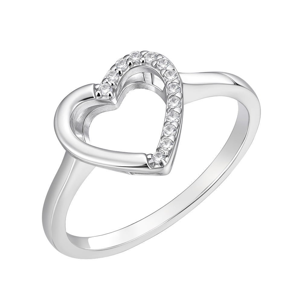 Zilveren ring met een romantisch hartvormig ontwerp. In het midden straalt een ronde zirkonia steen, omringd door kleinere zirkonia’s die samen een sprankelend hart vormen. De slanke band zorgt voor een verfijnde uitstraling en laat de stenen extra opvallen. Een sierlijk sieraad dat bij elke gelegenheid gedragen kan worden.