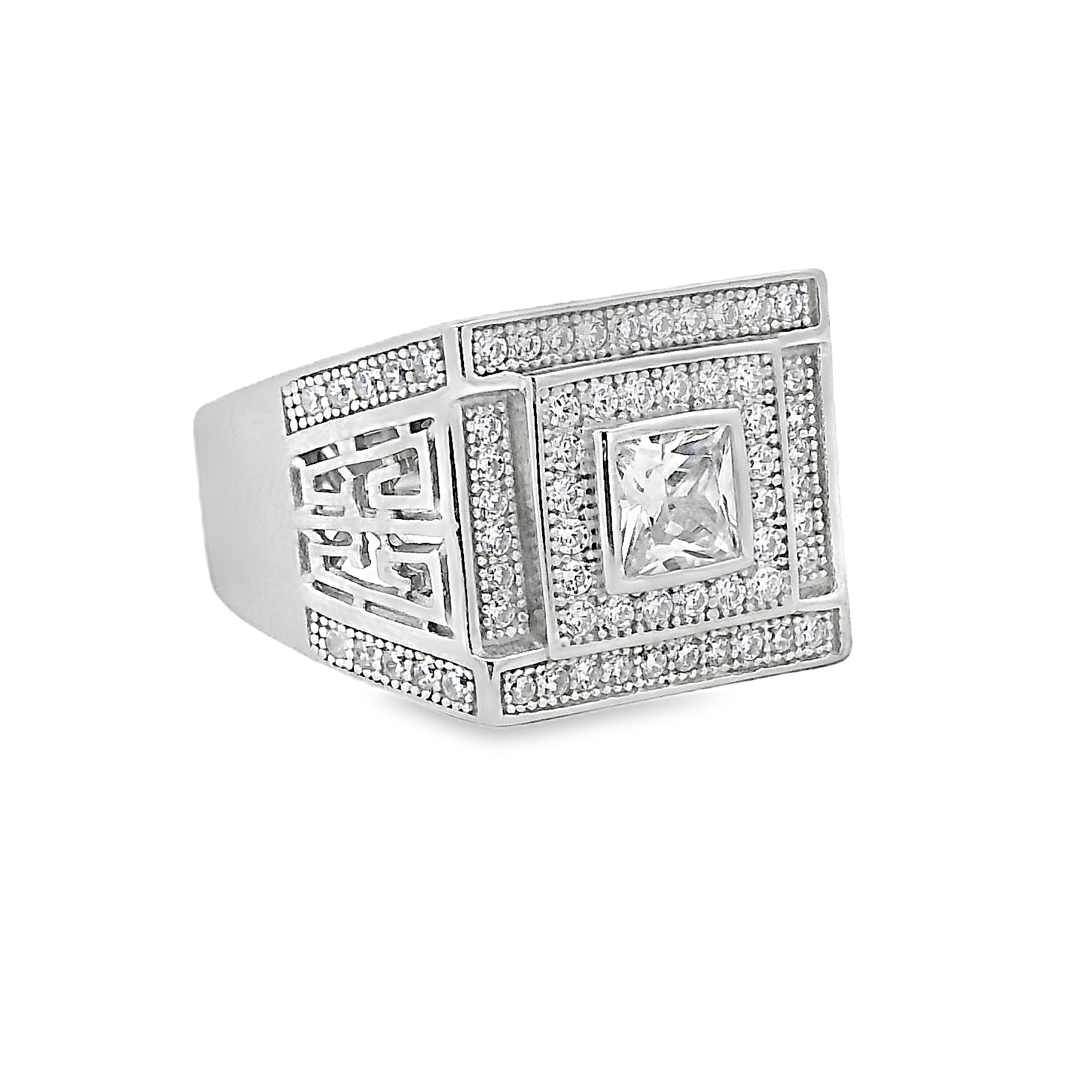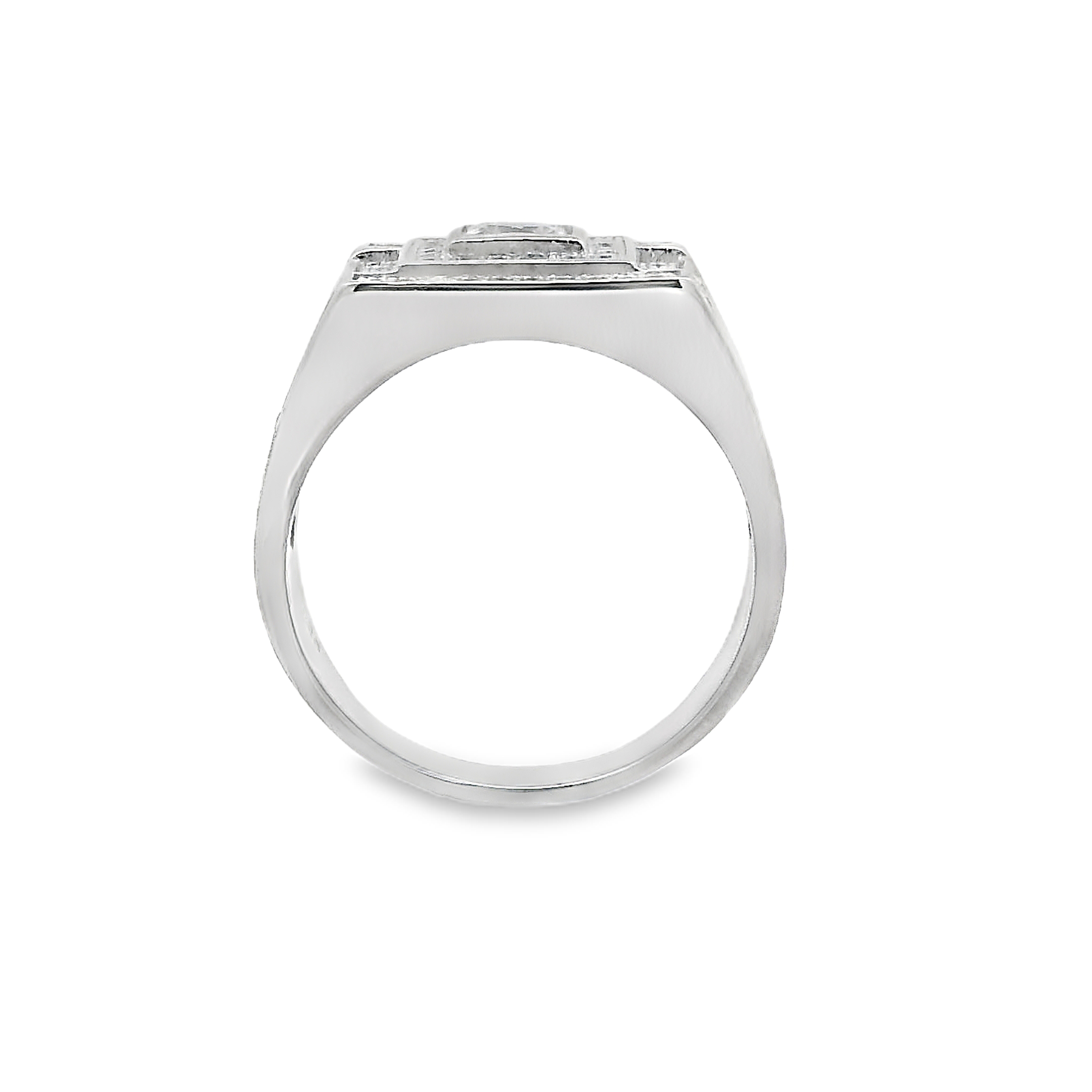 Stijlvolle zilveren gerhodineerde herenring. Het is een stevige ring en is gezet met schitterende zirkonia stenen.