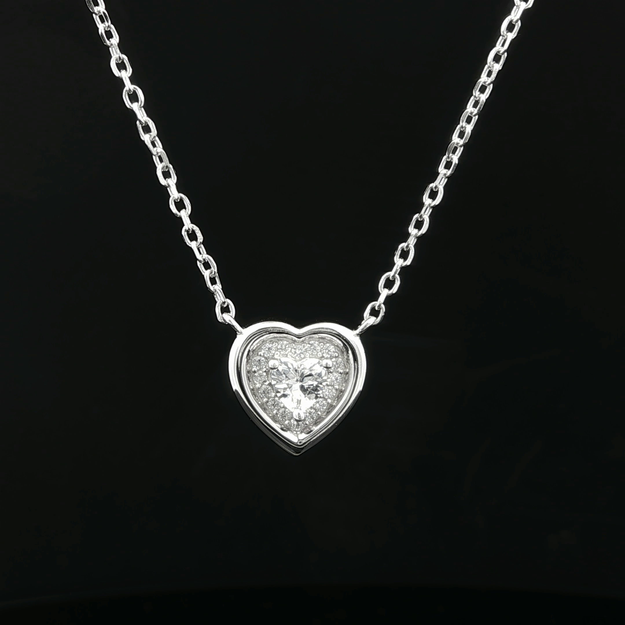 Deze zilveren gerhodineerde ketting is voorzien van een hartvormige hanger met een centrale zirkonia steen. Rondom de middensteen zijn kleine zirkonia stenen geplaatst die zorgen voor een verfijnde glans. Het hartdesign geeft de ketting een tijdloze en elegante uitstraling. Door het compacte formaat is het sieraad subtiel en prettig om dagelijks te dragen. De ketting laat zich eenvoudig combineren met andere zilveren sieraden.