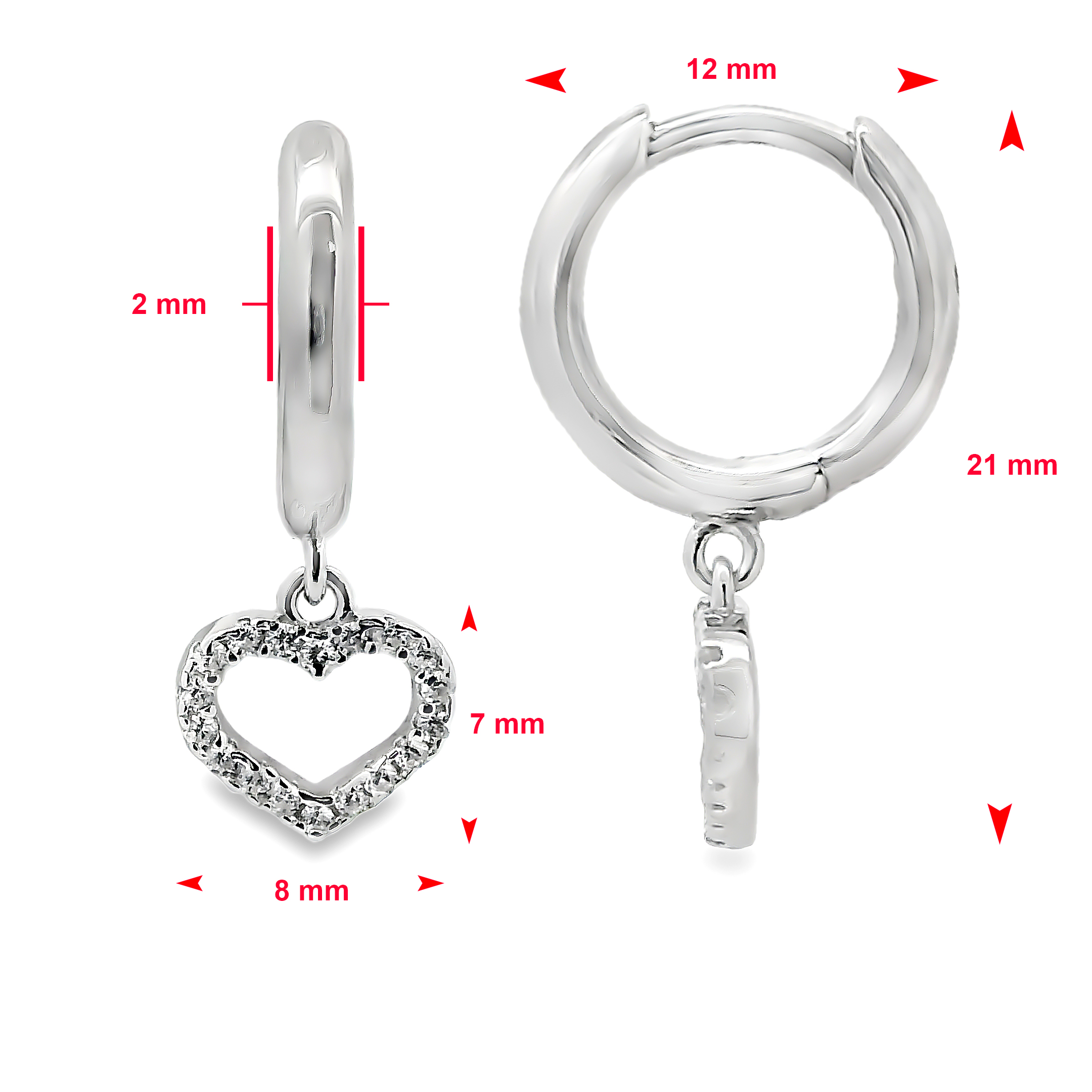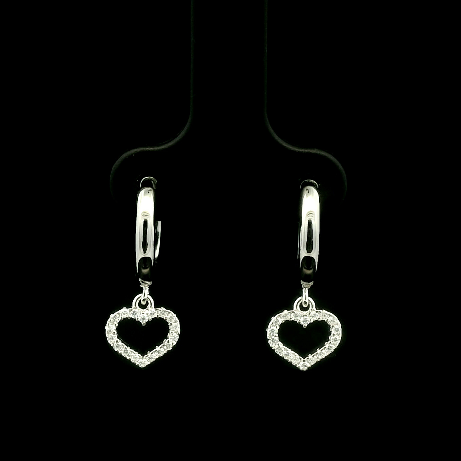 Deze charmante oorbellen van gerhodineerd zilver hebben een verfijnd design met een glanzende creool en een speels hartvormig hangertje. Het open hart is subtiel bezet met fonkelende zirkonia steentjes, wat zorgt voor een elegante en romantische uitstraling. Een tijdloos sieraad dat perfect past bij zowel dagelijkse looks als speciale gelegenheden.