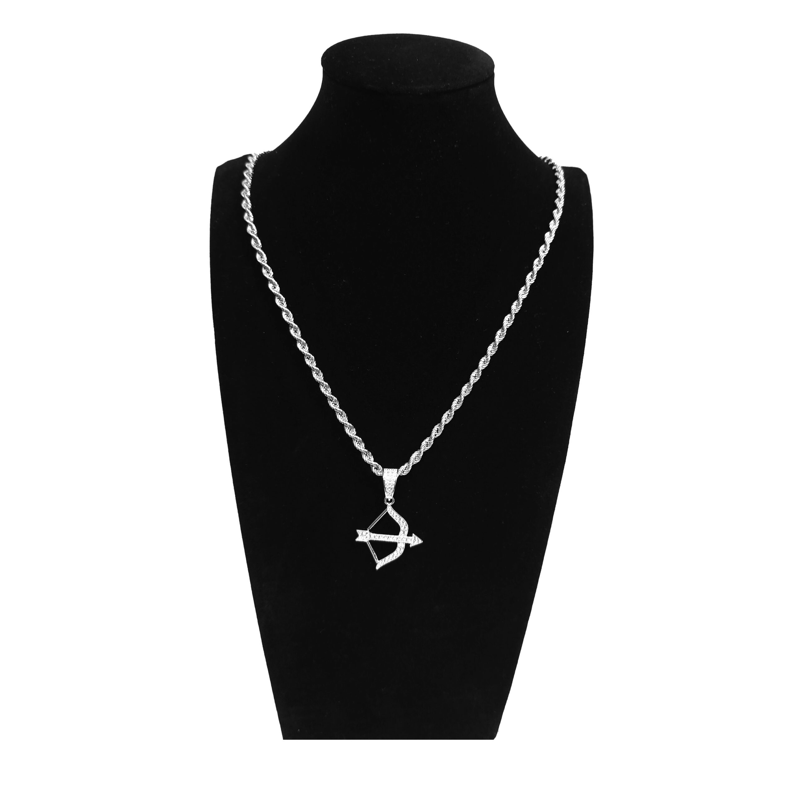 Deze zilveren gerhodineerde hanger in de vorm van een pijl en boog is een elegant en betekenisvol sieraad. Gezet met schitterende zirkonia stenen, straalt het een subtiele luxe uit. Het verfijnde ontwerp symboliseert focus en kracht, ideaal voor een unieke persoonlijke touch. Een tijdloos accessoire dat past bij iedere stijl.