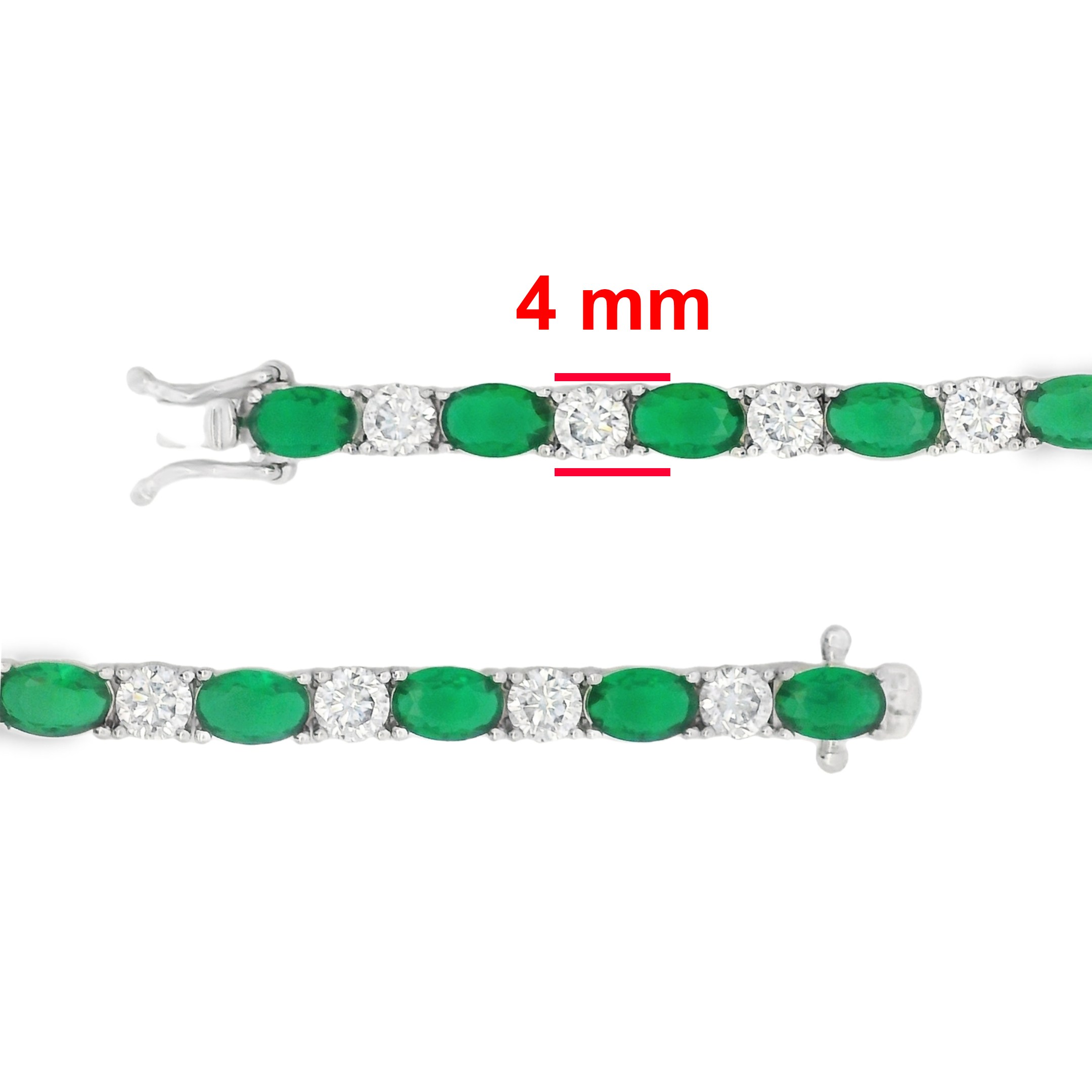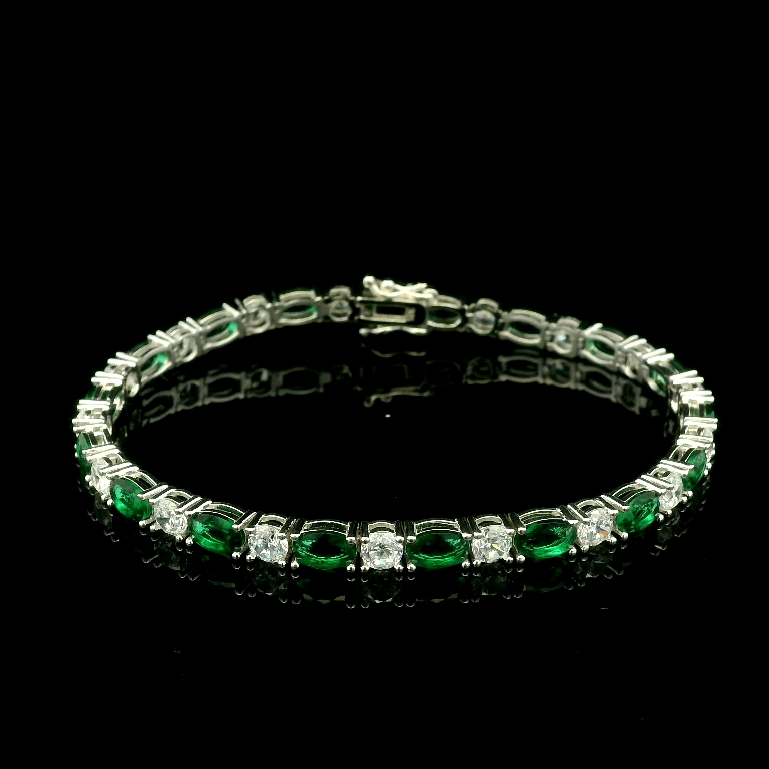 Deze gerhodineerde zilveren armband straalt luxe uit dankzij de mooie combinatie van groene en witte zirkonia stenen. De ovale vormen geven de armband een verfijnde en tijdloze uitstraling. Ideaal om je look kleur en klasse te geven, zowel bij feestelijke gelegenheden als dagelijks gebruik. Een echte blikvanger voor de liefhebber van bijzondere sieraden.