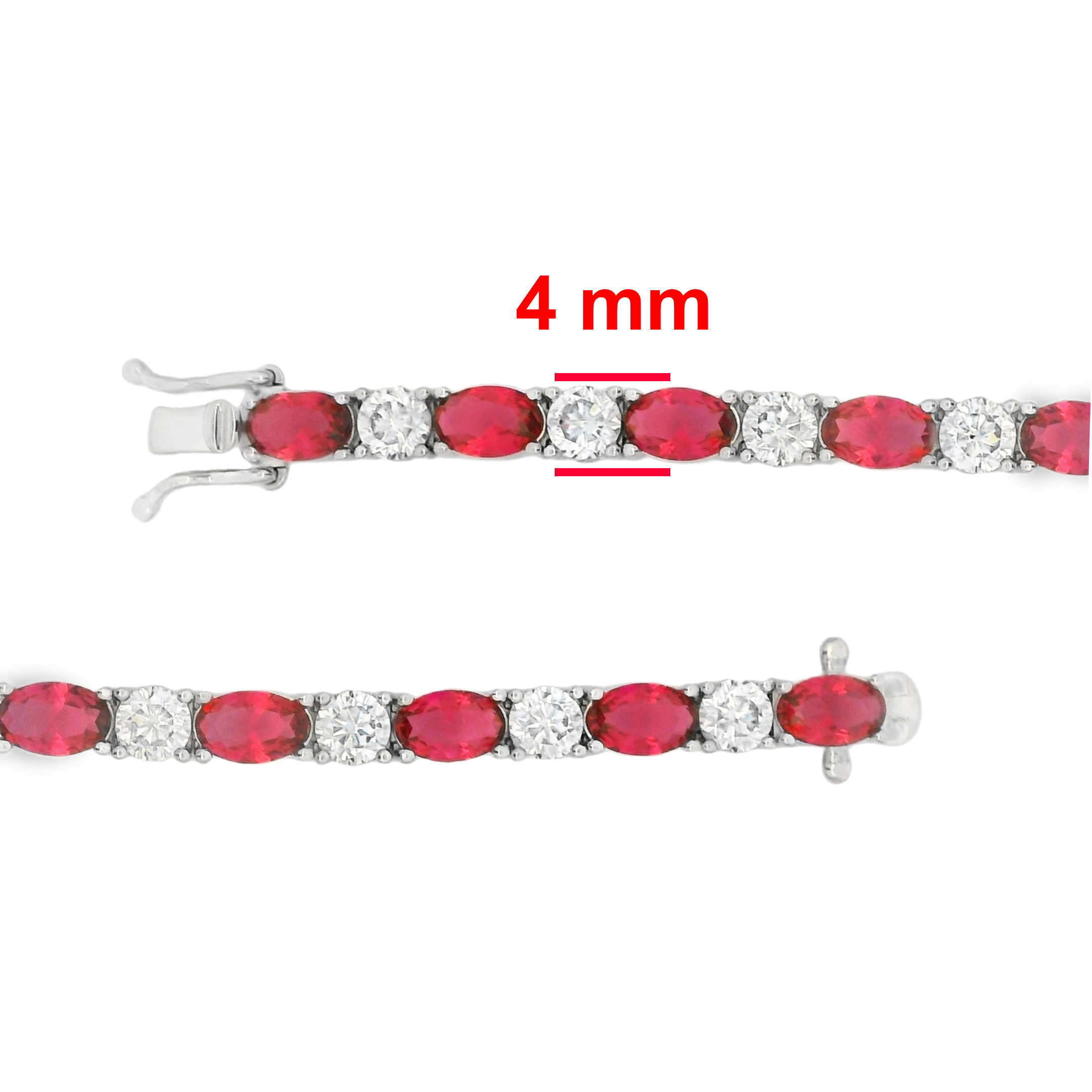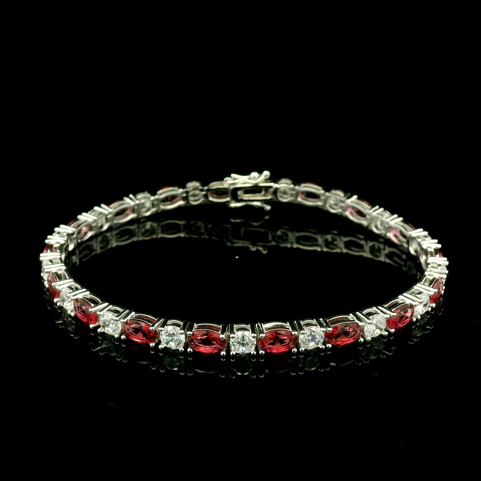 Deze elegante armband van gerhodineerd zilver is versierd met prachtige rode en witte zirkonia stenen. De diepe rode kleur geeft het sieraad een warme en opvallende uitstraling. Perfect voor wie een stijlvolle en romantische touch aan zijn outfit wil toevoegen. Een bijzonder sieraad dat niet onopgemerkt zal blijven.