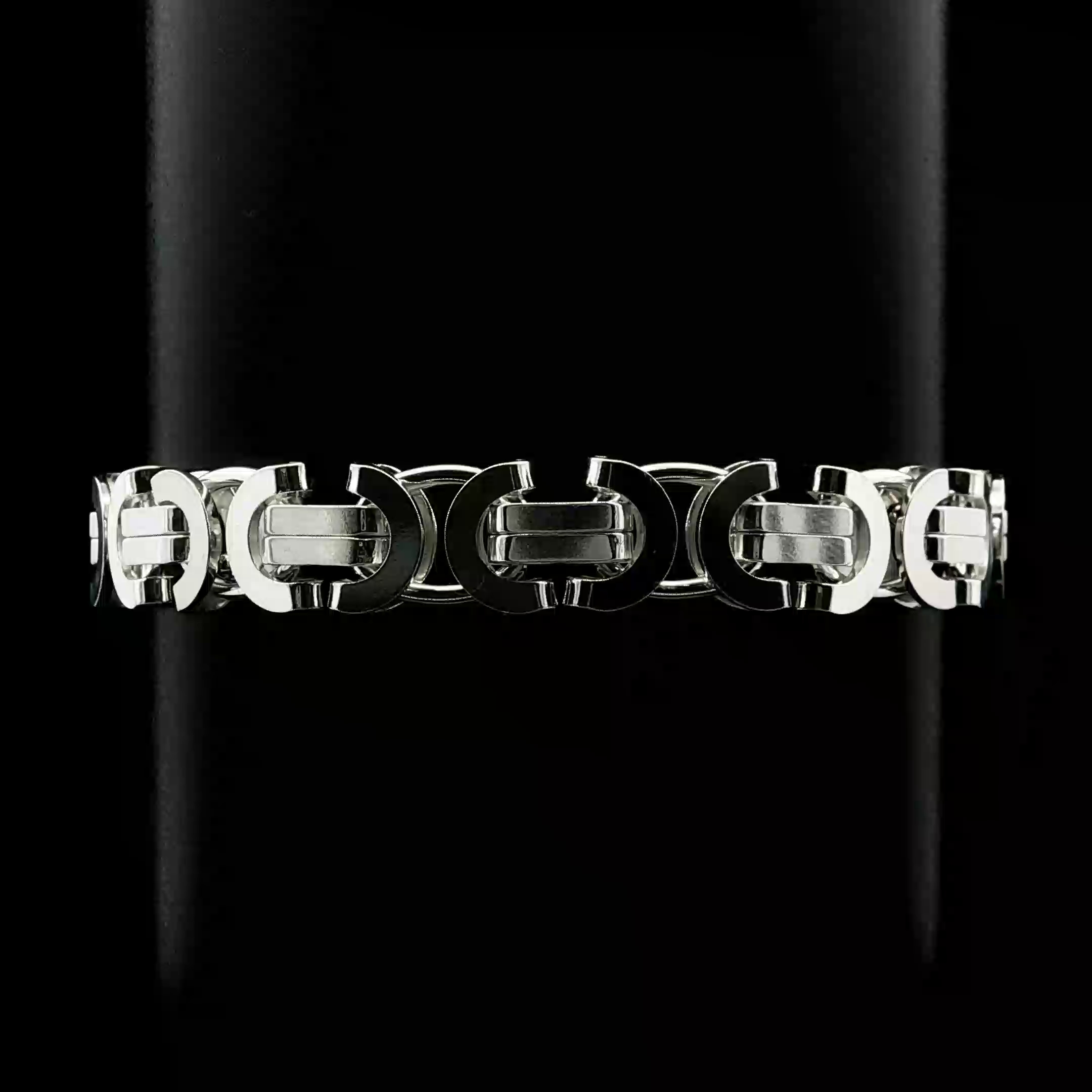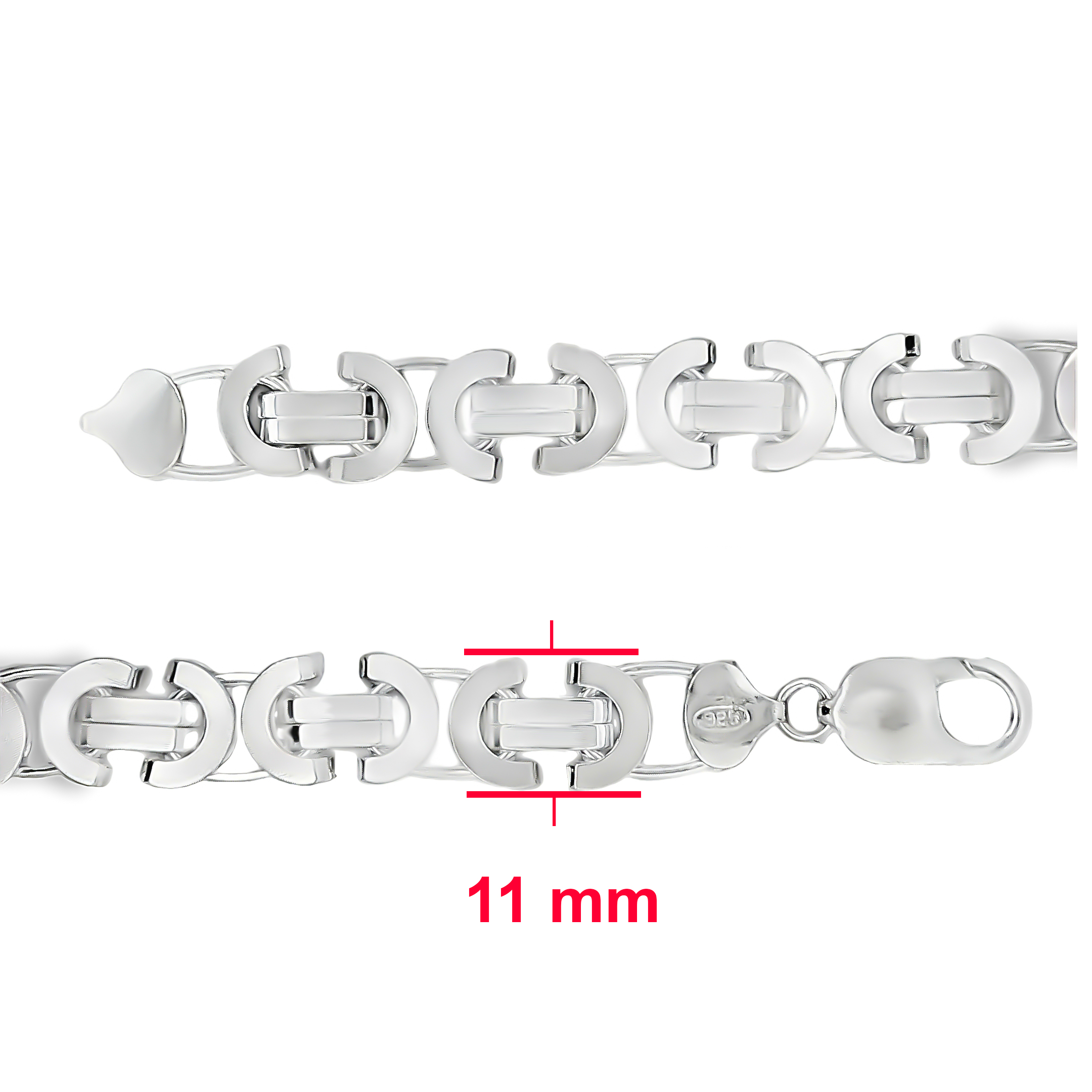 Deze platte koningsschakel armband is vervaardigd uit zilver en heeft een robuuste en stijlvolle uitstraling. De strak in elkaar gevlochten schakels zorgen voor een krachtig design dat perfect past bij een elegante, maar stoere look. Een tijdloos sieraad voor de moderne man.